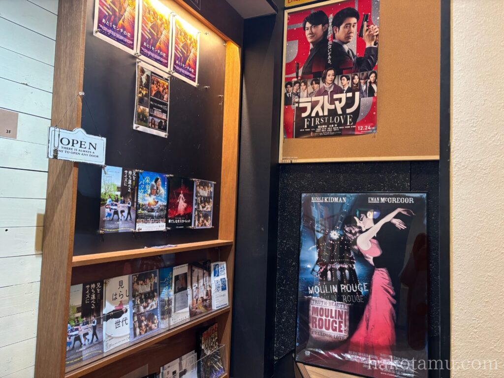 階段を登っていくと2階のフロアにある映画のフライヤーやポスターです🎬ムーランルージュ✨筆者も好きな映画の1つです!この映画のサントラもgood👍