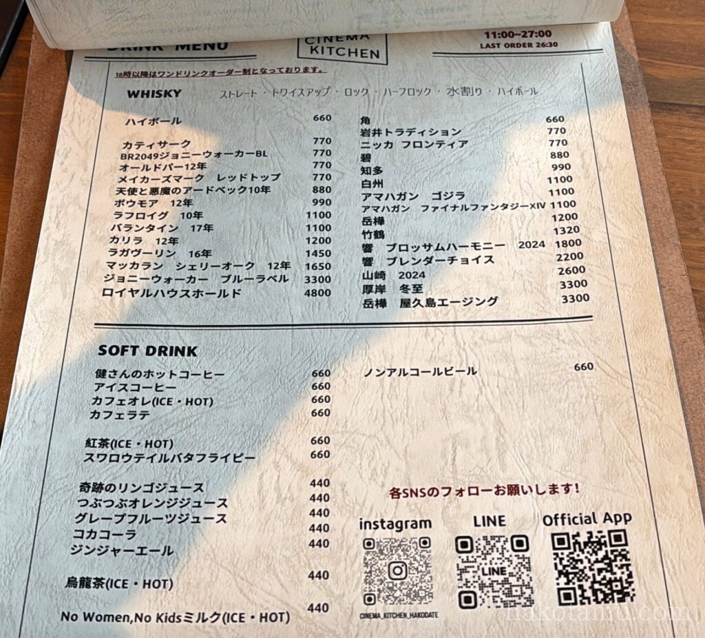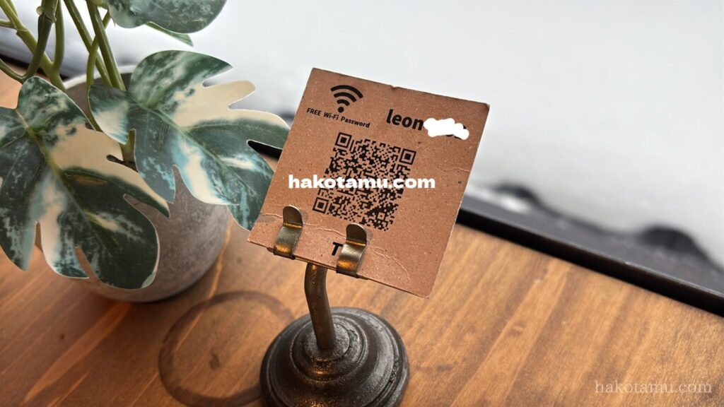 QRコードからの注文も可能です!フリーWi-Fiもあり親切ですね👍しかも名前がleon~という大人気映画の名前がついていました🔫筆者も、めちゃくちゃ大好きな映画です❤️