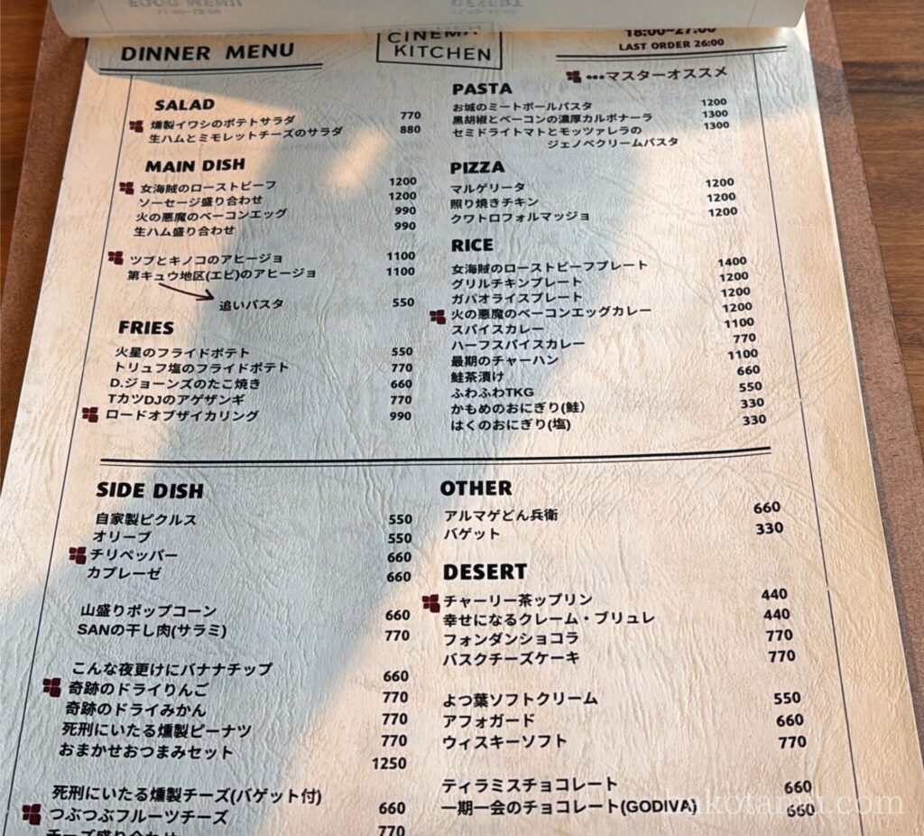 単品やドリンクも豊富です🍹メニュー名も映画にちなんだものもあり楽しいですね🎥