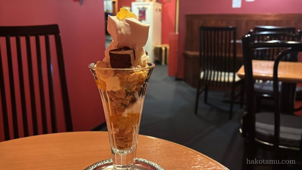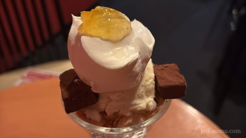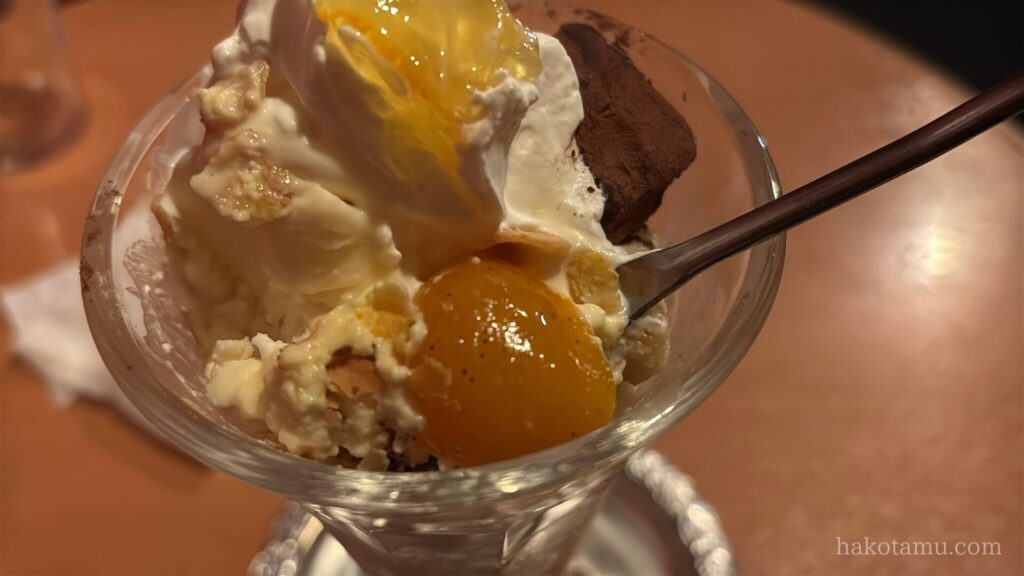 しばらくすると、お目当てのパフェが登場です🎉季節限定の金柑とクリームチーズアイスのパフェです😊