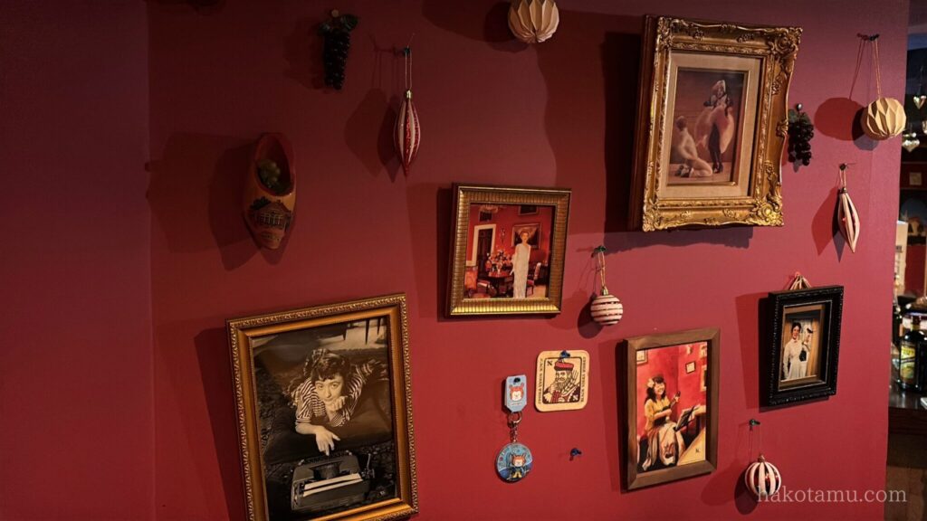 真っ赤な壁には、写真などが沢山飾られていました!