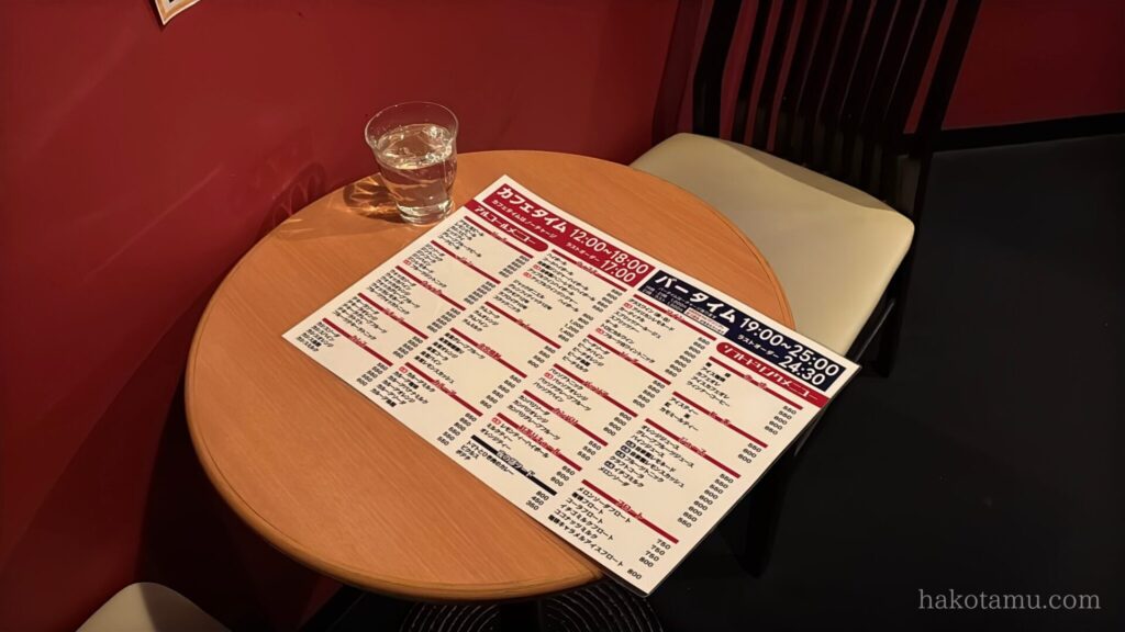 | 営業時間 | 日・火・水・木 12時〜18時(ラストオーダー17時) 金・土 19時〜25時(ラストオーダー24時30分) |