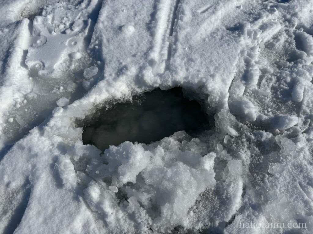 時には、こんな場所もあるので注意です!氷が柔らかくズボっと沈み、ヒヤっとなります笑😅