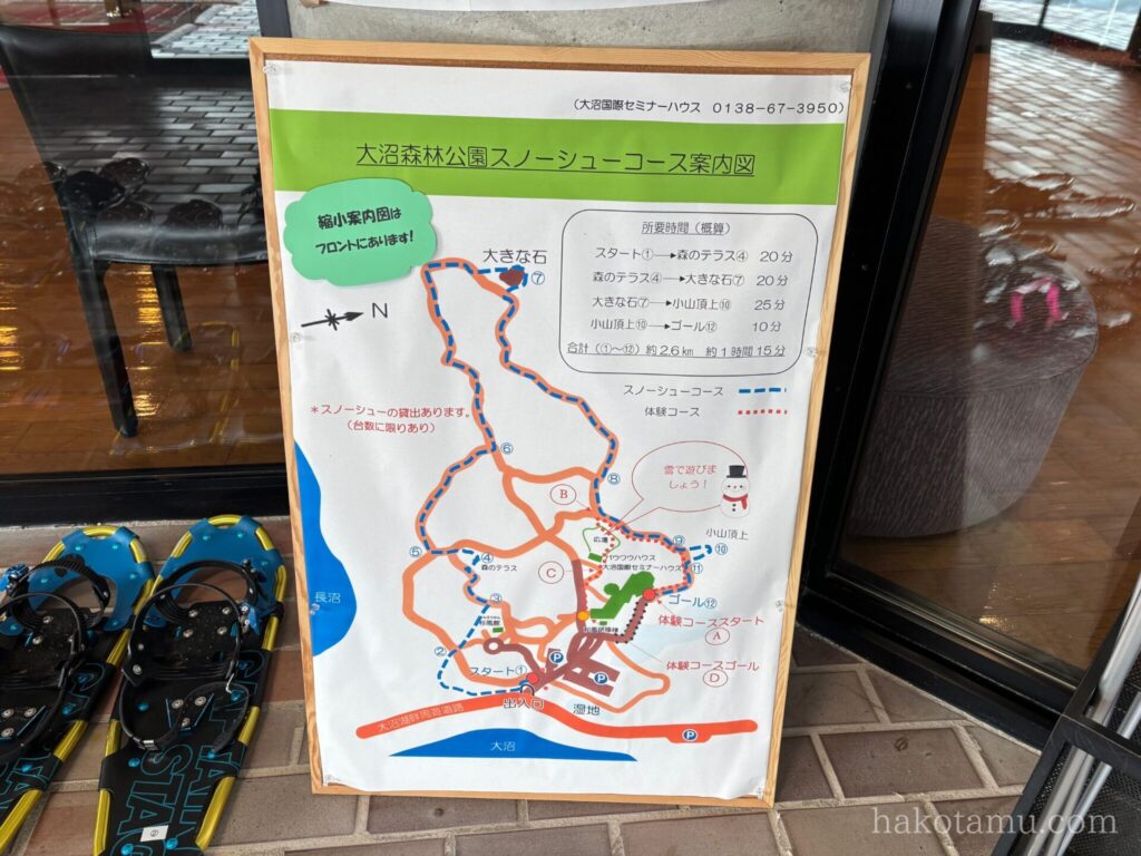 スノーシューのコースが案内されていました!全コースを回ると約2.6km1時間15分のようです!