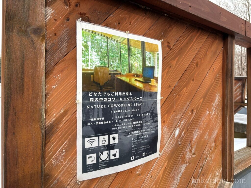 コワーキングスペースもあります。300円で1ドリンク付き時間無制限。自然を見ながらゆっくりと作業ができます。筆者が訪問した日も数名がこちらで作業している姿がありました。