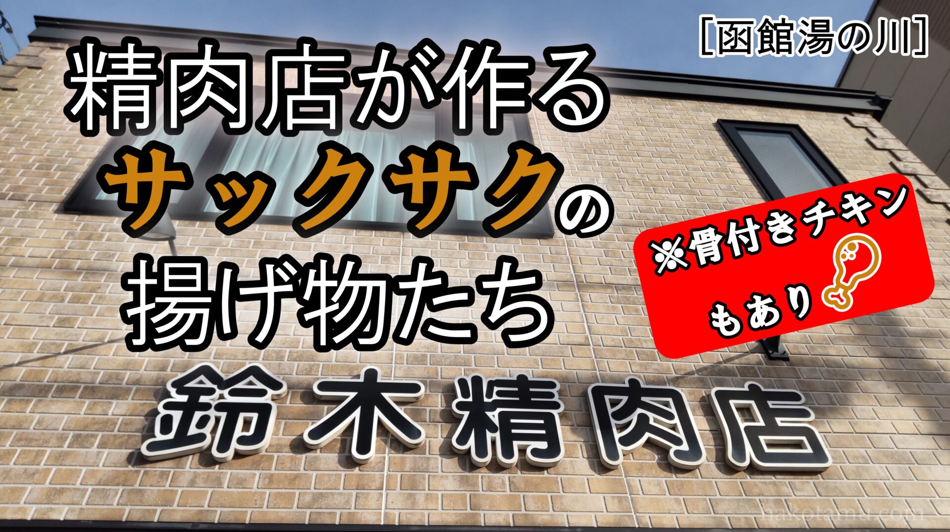 先日、初訪問してきたのは市電の湯の川駅から徒歩3分ほどの所にある鈴木精肉店さんです。こちらで販売しているホットスナックが美味しそうだとの話を耳にし、興味が沸き色々買い込んできました。